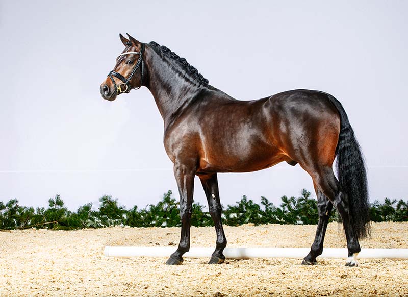 D-Day AT - ein sympathischer Nobelmann in dunkler Jacke mit weit überdurchschnittlichem Bewegungspotential und perfekten Interieurwerten. Trabmechanik mit der gewünschten Motorik aus der Hinterhand, immer locker und durch den Körper schwingend, feinste Galopparbeit in perfekter Bergauftendenz und überragender Schritt. Ein Hengst, der durch ein Höchstmaß an Harmonie bei absolut überzeugenden Charakterwerten und perfekter Rittigkeit besticht.