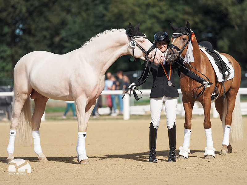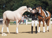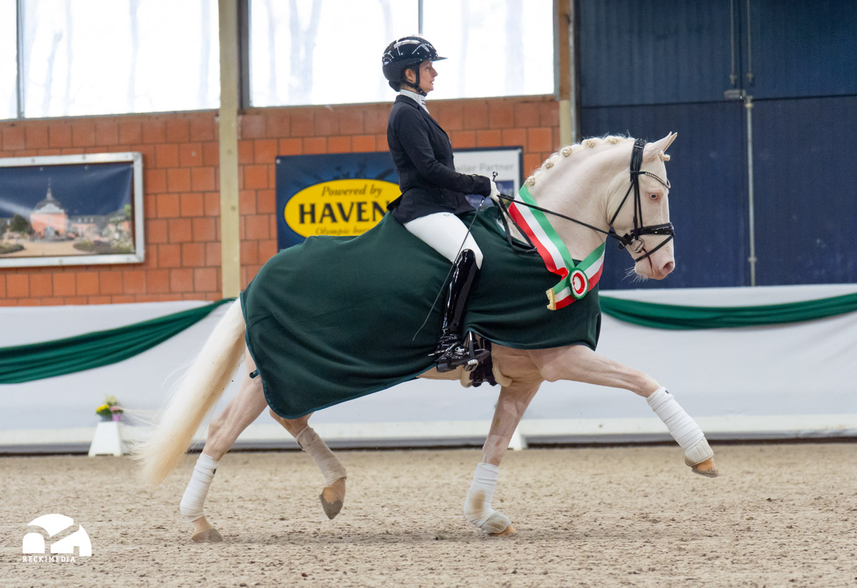 Vater D-Gold AT NRW, Siegerhengst und Doppel-Bundeschampion, zählt zu den prägenden Vererbern seiner Generation. Seine züchterische Klasse zeigt sich in zahlreichen gekörten Söhnen – darunter mehrere Siegerhengste – sowie in Staatsprämien- und Siegerstuten und einer Vielzahl sportlich hoch erfolgreicher Reitponys.